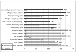 ) жители поселка недостаточно осведомлены о том, какие торговые точки и какие предприятия по предоставлению услуг присутствуют, а какие отсутствуют, в пределах границ данного поселка, а так же об ассортименте и ценах товаров, продающихся в поселке;