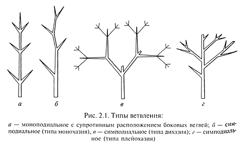 симподиальным типом ветвления. Оба типа ветвления встречаются в пределах многих