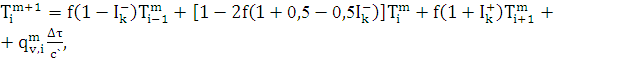 температуры в предыдущий m -й момент времени в узлах (i-1), i и (i+1), т.е.