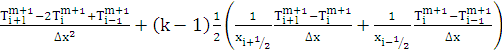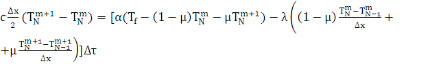 (38) называется разностной схемой Кранка-Николсона. Значение температуры в (m + 1) -й момент времени
