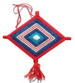 "Божье око" помещают над входной дверью в дом, комнату, над кроватью ребенка, в место, которое хорошо видно входящему человеку. Яркий и неожиданный образ оберега притягивает внимание входящего, который забывает о недобром намерении по отношению к владельцам дома.