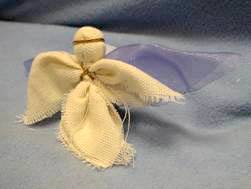 Для изготовления ангела нужно взять квадратный лоскутик ткани, размер где-то 20смх20см. Но в принципе можно использовать размер больше или меньше. В идеале, народная кукла изготавливается без ножниц и иголки. Поэтому квадратик не вырезается, а отрывается от куска ткани, при этом с краю получается ровная бахрома, так напоминающая перышки.