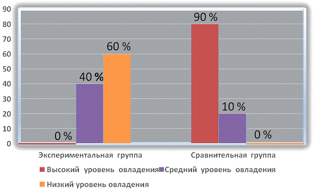 % опрошенных детей экспериментальной группы не поняли заданий по причине того, что начали систематическое обучение в ДОУ относительно недавно. Устная и письменная словесная речь отсутствуют.
