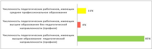 образование 3 чел. (11%), все педагогические работники, имеют среднее