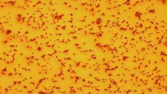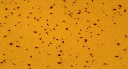 круглые с ровными краями, плоские, гладкие, желто-оранжевые, непрозрачные, блестящие колонии, диаметр 1-3мм |