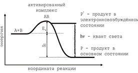 Стадия возбуждения - образование при прохождении химической реакции с достаточной энергией продукта реакции (Р) в возбужденном состоянии (Р*) в котором излучательный переход возможен: