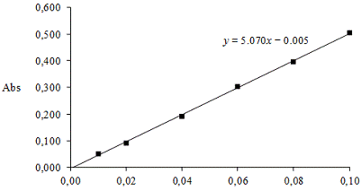 Калибровочный график линейно аппроксимировали методом наименьших