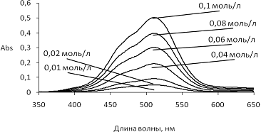 Рисунок 14 - Спектры поглощения растворов хлорида кобальта полученные на спектрофотометре до вымачивания полимера