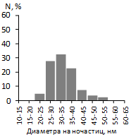 Рисунок 17 - Гистограмма распределения наночастиц по размерам в образце