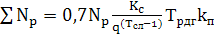где Kc - коэффициент суммирования, применяется в зависимости от срока службы и показателей изменчивости интенсивности движения; Тсл - расчётный срок службы; q - показатель изменения интенсивности движения, принимается в зависимости от категории дороги; Трдг - расчётное число расчётных дней в году, соответствующих определённому состоянию деформативности конструкции дорожной одежды. kн - коэффициент, учитывающий вероятность отклонения суммарного движения от среднеожидаемого в зависимости от категории дороги и капитальности.