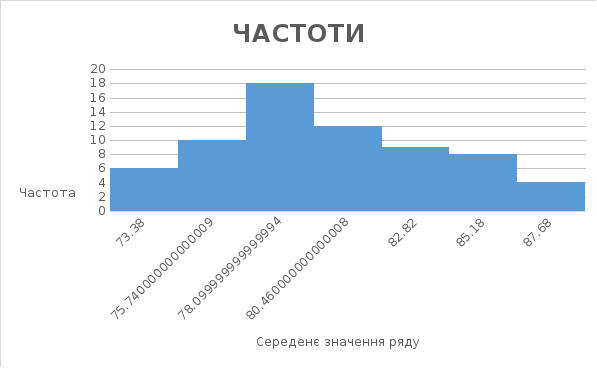 Гістограма 2.1. Значення частот для нормального розподілу.