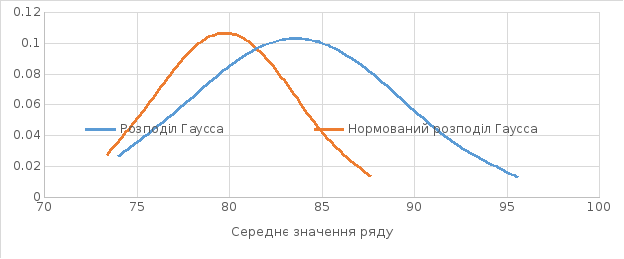 Графік 2.1. Густина нормального розподілу (розподілу Гаусса).