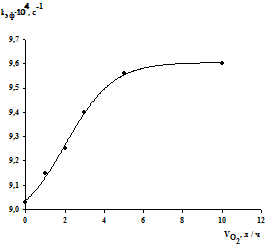 Начальная стадия процесса. Опираясь на данные рис. 7 можно заключить, что лимитирующей стадией выступает, вероятнее всего, реакция (1.2). Взаимодействие MoO3 с H2О2 происходит относительно медленно и поэтому предварительное выдерживание оксида молибдена (VI) в пероксиде водорода (рис. 7) позволяет накопить до начала опыта определенную концентрацию активной формы катализатора. Вклад стадии (1.3) в образование H2MoO5, скорее всего, мал из-за низкой концентрации H2MoO4.