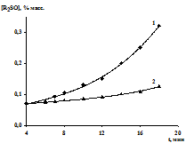 (1) и без выдержки (2). Т = 600С, [R2S]0