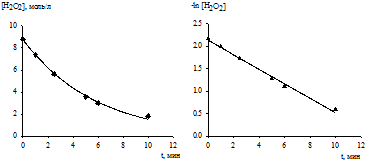 пероксид водорода действительно расходуется по закону реакции первого порядка,