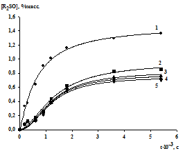 Таблица 5. Эффективные константы скорости накопления сульфоксидов в опытах с добавлением фенола, персульфата аммония и без добавок. Т = 600С, [R2S] = 1.5% масс., [H2MoO4] = 0.005% масс., [Н2О2]0= 5.9 % масс.