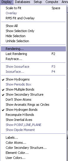 Также в меню DISPLAY ---RENDERINGS Можно выбрать модель атома(линии, шарики), поварьировать параметры отображения и т.д. Фон экрана меняется в меню FILE—PREFERENCES