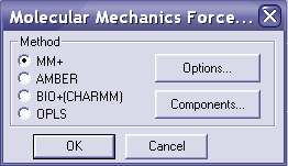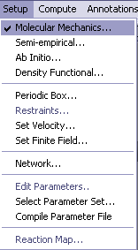 В меню setup выбираете molecular mechanics и MM+, нажимаете ОК.