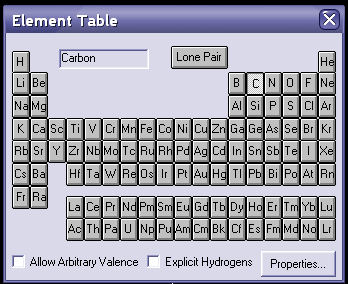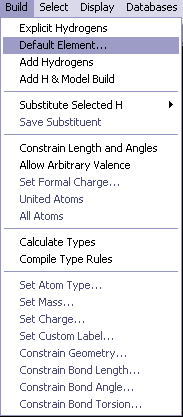 Если необходимо добавить еще какой-либо атом, которого нет верхнем меню, заходим в BUILT—DEFAULT ELEMENT и выбираем необходимый элемент в таблице.
