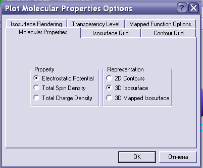 Последнее, что необходимо сделать – это построить электростатический потенциал соединения для оценки его реакционной способности. Идем в compute-plot molecular graphs и выбираем следующие параметры: