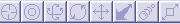 Слева направо: построить молекулу, выделить, вращение молекулы, вращение по кругу, перемещение, выбор, увеличение и уменьшение, еще вариант перемещения.