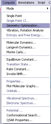 Повторяем оптимизацию, только выбираем semi emperical в меню setup(метод AM1, MNDO и др.) и также compute – geometry optimization, при необходимости увеличивая число циклов для расчета.