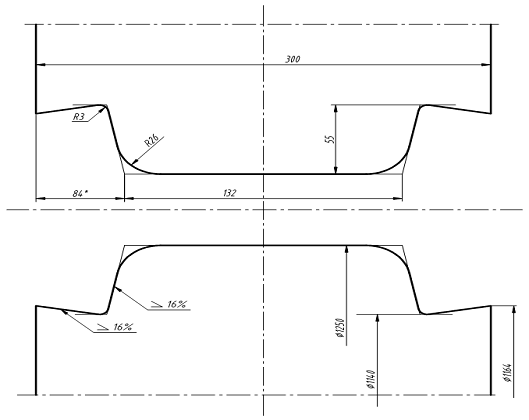 Угол наклона фланцев в ВК =16%