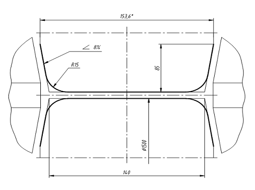 высотной и боковой деформации в открытом фланце предыдущего калибра