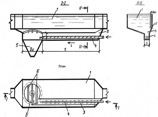 трубопровод для гидросмыва осадка; 5 - песковой бункер; 6 - колосники