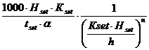 Kset - коэффициент использования объема проточной части отстойника, 0,5.- продолжительность отстаивания, с, соответствующая заданному эффекту очистки и полученная в лабораторном цилиндре в слое h1, 593с;- глубина воды в цилиндре, 0,5м;