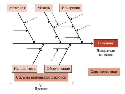 Диаграмма обеспечивает всестороннее видение процесса формирования качества и внешних условий его осуществления. К. Исикава разработал этот метод (который не является в полном смысле статистическим), чтобы помочь японским менеджерам анализировать проблемы, связанные с процессами, за которые они не несут ответственности. Он полагал, что любые причины могут быть связаны с одним из следующих факторов условий производства товара или предоставления услуги: (1) используемыми методами; (2) материалами; (3) рабочей силой; (4) оборудованием; (5) внешней средой. Помимо определения влияния отдельных причин диаграмма Исикавы позволяет установить взаимосвязи между ними. Применение этой диаграммы вполне совместимо с использованием метода мозгового штурма и поощряет вовлечение в процесс обсуждения разных людей, каждый из которых имеет возможность высказаться по известным ему отдельным аспектам проблем.