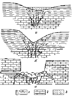 лійка просмоктування; в) карстовий колодязь провального походження; 1 -