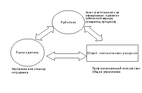 В данной модели у каждого участника своя роль. Так, работник несёт ответственность на планирование и развитие собственной карьеры, руководитель играет роль наставника, а кадровая служба выступает профессиональным консультантом и, вместе с этим, управляет развитием сотрудников в организации.