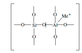 Тетраэдры с ионами Si4+ электрически нейтральны, а тетраэдры с ионами трехвалентного алюминия Аl3+ имеют заряд минус единица, который нейтрализуется положительным зарядом катиона Ме+ (сначала катионом Na+, поскольку синтез чаще ведется в щелочной среде, затем в результате катионного обмена — катионами других металлов, катионом NH4 или протоном Н+).