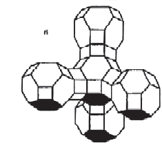 а — тетраэдр; б — содалитовая клетка; в — суперклетка; г — элементарная ячейка