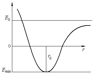 Атомы образуют стабильную молекулу, если это энергетически выгодно, т.е. энергия молекулы оказывается меньше суммарной энергии атомов, образующих молекулу. Кривая потенциальной энергии молекулы приведена на рисунке 1.1.