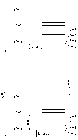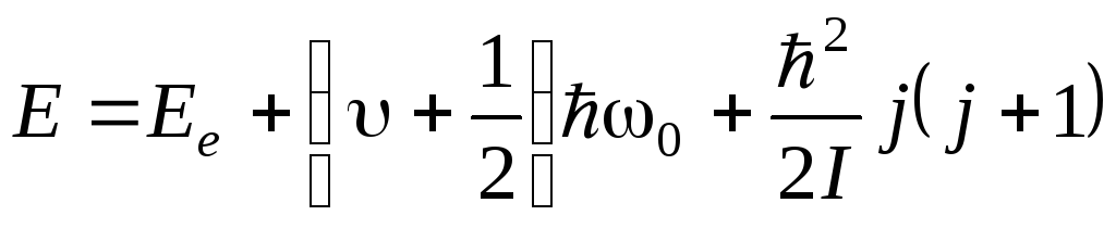 Из формулы (1.6) следует, что расстояния между соседними вращательными уровнями увеличиваются с ростом квантового числа j. Таким образом, полную энергию молекулы можно представить как сумму: