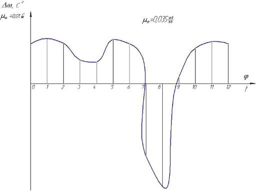 Расчёты угловой скорости и изменения угловой скорости приведены в таблице 4.