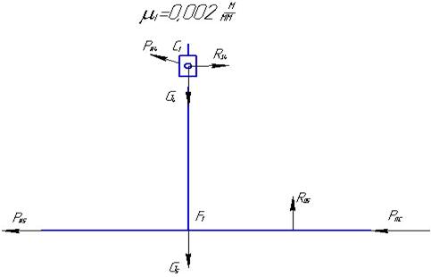 Рис. 14. Пример построения плана сил выходного звена механизма.
