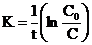 или lnC=lnCo-K∙t;