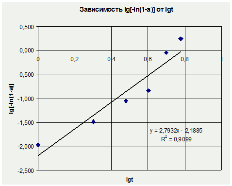 Рис. 3. Зависимость lg[-ln(1-α)]