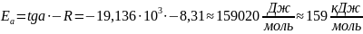 Предэкспоненциальный множитель А можно найти через уравнение Аррениуса, пользуясь табличными данными: