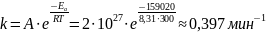 Находим константу скорости реакции при T = 300 K через уравнение Аррениуса:
