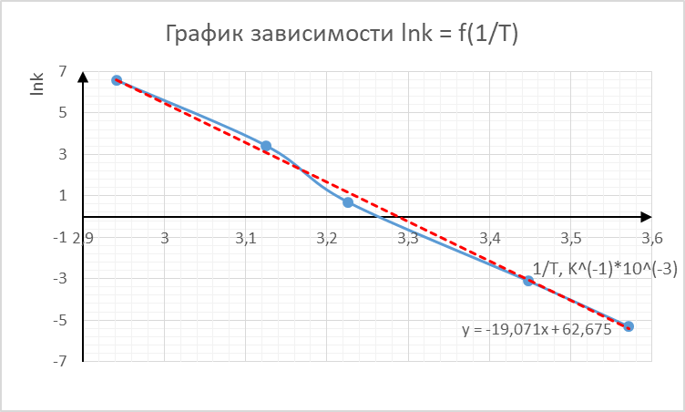 1). Экспериментальные результаты по определению константы скорости при разных температурах приведены в таблице: