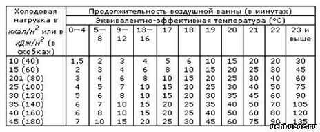 Таблиця 2.1.2.1 - Визначення тривалості повітряної ванни в залежності від холодової навантаження і еквівалентно-ефективної температури