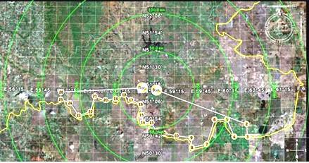 качестве иллюстрации применения БЛА в пределах радиовидимости построен маршрут