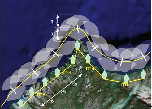 В настоящее время главной технической составляющей мониторинга обстановки на морских границах являются посты технического наблюдения (ПТН), представляющие собой сеть береговых радиолокационных станций. Дальность обнаружения цели РЛС ПТН составляет до 25 км. Такова же примерно удаленность ПТН одного от другого. Применение БЛА совместно с ПТН позволит: