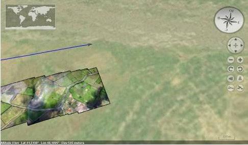 При указании пикселя фотографии автоматически вычисляются координаты указанной точки поверхности Земли, с учетом телеметрии, дисторсии камеры и рельефа.