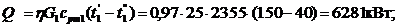 потери в окружающую среду (от 0,95 до 0,98). Примем η=0,97.