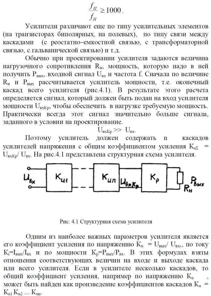 Широкополосные усилители предназначены для усиления широкого спектра частот. Для них характерно отношение